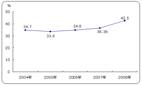 近年来,尽管我国钢铁企业的生产规模大幅提高,但由于我国钢铁企业数量增长过快,产业集中度不升反降。2000年前10位企业钢产量合计占全国的49.0%,2006年却降低到了34.8%。然而,2007年我国钢铁 行业 的联合重组使集中度有所回升,前10家企业产量所占比例也回升到了36.36%。2008年,这一数字达到了42.5%。