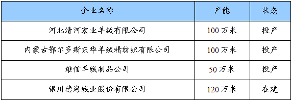 银川德海绒业股份有限公司,目前已开工建设的年产羊绒精纺超薄面料120万米、粗纺羊绒针织纱240吨、羊绒精梳绒300吨的项目,投资规模达6.6亿元人民币,项目建成后将为填补国内羊绒高级精纺产品的空白,发展中国的羊绒产业,发挥出极大的作用。