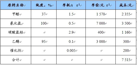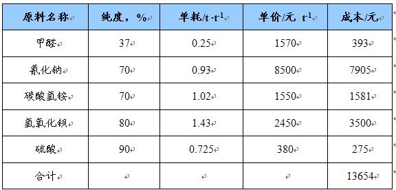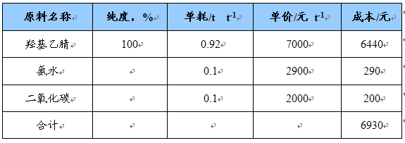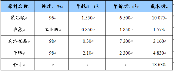 氯乙酸氨解法原料消耗及成本
