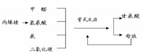 为了提高甘氨酸的质量,降低生产成本和减少环境污染,国外开发了以氢氰酸替代氰化钠或氰化钾改进的Strecker工艺,反应以氢氰酸、甲醛、氨和二氧化碳为原料,反应液在管式反应器中进行。在低温下析出甘氨酸,母液循环使用,通过改变反应体系中副产物的浓度,使平衡向目标产物方向移动,从而达到提高反应收率的目的。虽然该工艺具有流程短、收率高和不产生污染等诸多优势,但由于氢氰酸的剧毒性和易挥发性,无法长距离运输,装置只能放在其原料装置附近,制约了甘氨酸生产的发展。