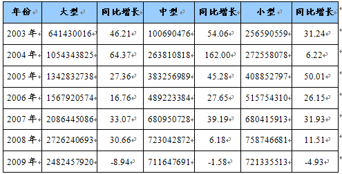 第二节 2003-2009年大中小型企业经营指标对比