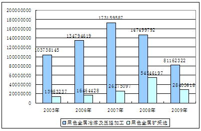 2005-2009年黑色金属冶炼及压延加工业黑色金属矿采选业利润总额对比