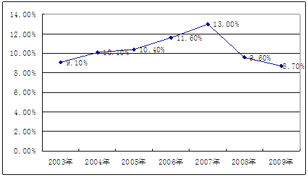 外贸出口有望恢复正增长。世界经济由大幅负增长转为小幅正增长是中国出口恢复增长的基础性因素。数量 分析 显示,中国出口量对世界经济总量弹性为 5.3,即世界经济每上升或下降一个百分点,中国出口量随之上升或下降5.3个百分点。2010年世界经济如果实现2%以上的增长,我国外贸出口增速有望达到10.8%左右;内需强劲有助于拉动进口需求进一步加速,预计进口增长13.5%;实现外贸顺差2200亿美元左右,大体与2009年持平。发达国家居民家庭储蓄率上升,将在一定程度上影响对中国商品的需求。贸易保护主义进一步加剧,贸易摩擦明显增多,我国外贸出口形势并不乐观,难以回升到2008年的进出口绝对额水平。