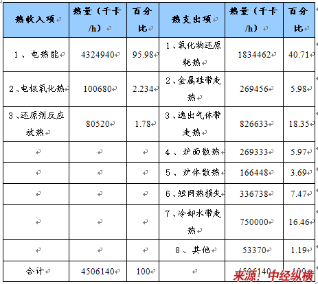 经过多年的摸索探讨,目前我国工业硅电弧炉的电效率平均在92%以上,各种提高电效率的技术或措施也比较成熟如改进短网结构设计、使用优质导电材质、采用低压补偿技术、改善电参数等方面。但是,我国工业硅电弧炉的热效率普遍比较低,这是导致我国工业硅生产能耗高、能源利用效率低的主要原因。