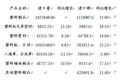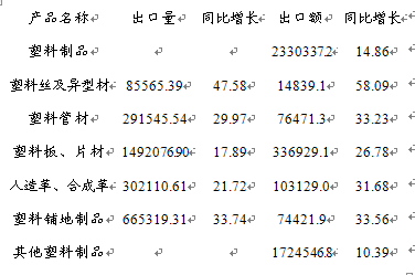 据海关总署统计,2007年塑料制品累计出口额为233.03亿美元,同比增长15.35%,占轻工出口总额的8.62%,居轻工 行业 第五位。国家出口退税和加工贸易政策调整后,“两高一资”产品出口受到限制,2007年1-3季度塑料制品出口增幅比上年同期下降了9.64个百分点。