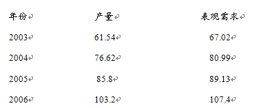 国内粘胶短纤的表观需求在2000-2006年之间呈现出增长趋势,而且基本保持两位数的增长幅度,预计今后几年间粘胶短纤需求仍将处于增长阶段。