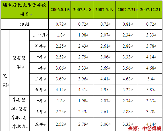 2007年中国人民银行6次上调人民币存贷款利率,一年期存款利率从2.79%上调到4.14%。2007年我国国民经济平稳快速发展,宏观调控进一步加强和改善;人民币汇率形成机制改革稳步实施,汇率弹性逐步增强;外汇储备继续快速增长,应对外部冲击的能力不断增强;财政收入、企业利润和居民收入大幅提高,财政、企业、居民的偿债能力不断增强;金融机构改革继续深化,公司治理进一步加强;金融 市场发展 迅速,运行总体平稳。
