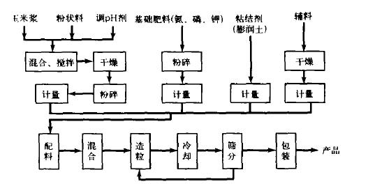 有机无机复合肥生产的工艺流程由4部分组成:有机质预处理;配料、混合;造粒;筛分、冷却、包装。