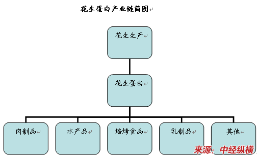 中国花生蛋白 行业 包括上游原料生产和下游食品制造两大分支。上游原料为花生种植与生产,下游产品主要包括肉制品、水产品、焙烤食品、乳制品、饮料、糖果诸多领域,相关企业达上万家。