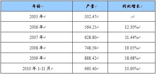 2005—2010年铜材产量统计