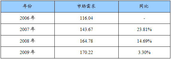 2006-2009年我国防雷市场需求统计