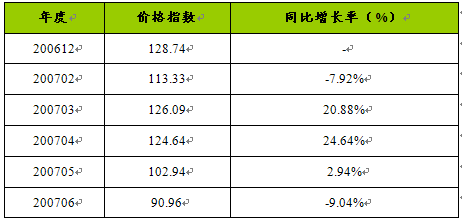 吸收光度计(台)价格指数月度数据表