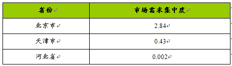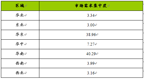 一、市场需求区域集中度比较