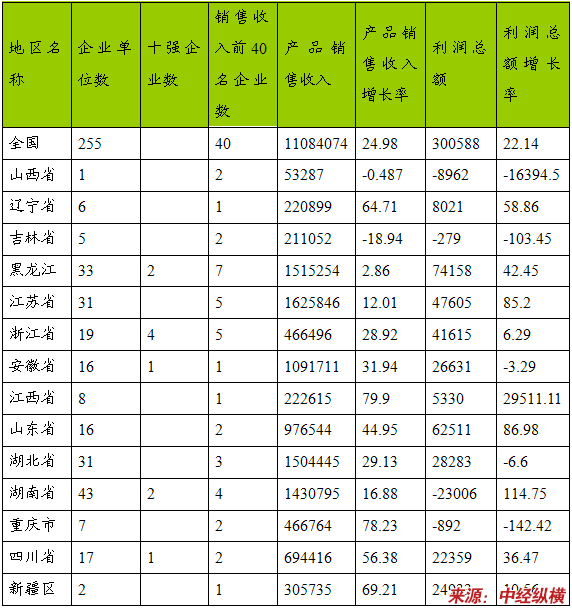 2004年,全国麻纺织业销售收入前十位的地区依次是:江苏省、黑龙江省、湖北省、湖南省、安徽省、山东省、四川省、重庆市、浙江省和新疆区。其中江苏省销售收入占全 行业 销售收入的14.67%,黑龙江省占13.67%,湖北省和湖南省分别占13.57%和12.91%,前四位地区合计占总销售收入的54.82%,而前十位地区销售收入占全 行业 总销售收入的90.92%。这也说明我国麻纺织 行业 市场集中度较高。