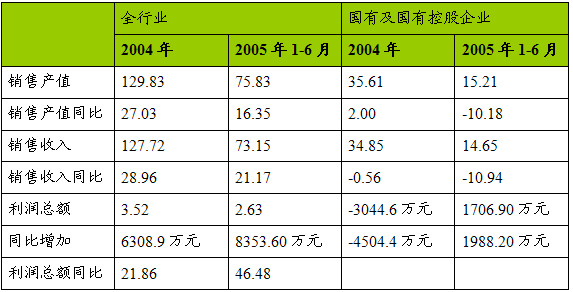 2004年全 行业 利润总额3.52亿元,增加6308.9万元,同比增长21.86%。其中国有及国有控股企业利润总额-3044.6万元,同比增长-4504.4万元。
