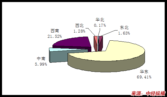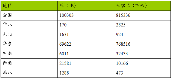 我国的丝绸工业具有很大的集中性,东南沿海地区占了绝对优势。以下按六个区域(华北、东北、华东、中南、西南和西北)进行 分析 。
