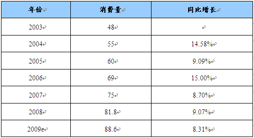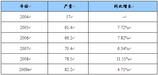 目前,国内聚氨酯需求动力包括较高的支配收入导致对家具需求的增加,建筑和旅游也导致大量宾馆进行重新装修,增加了对聚氨酯的需求,2004年海绵产量57万吨,其中家具 行业 用45万吨,汽车 行业 用5万吨,其他(包括鞋材、玩具、日用品)用7万吨,预计2009年达到82.2万吨。我国海绵生产企业已经超过上千家,规模多而质量杂,竞争无序,随着市场的进一步发展,一些产能落后,质量差的生产企业必将被淘汰,届时,海绵 行业 或将迎来一次产业重组。重组后的海绵产业产量继续增加,2012年将接近百万吨。