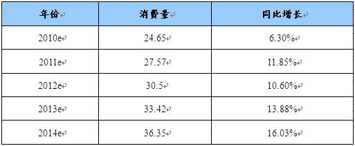 汽车领域随着汽车产量的增加,海绵的消费量也快速增加预计未来几年将仍保持10%以上的增速。
