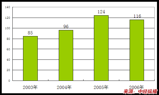 整体复苏迹象明显,全年光纤产量达到2640~2900万芯公里,产能利用率已经从2005年的60%左右提升到90%以上。预计2007年全