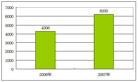 2007年我国进口木材总量为4136.46万m3,同比2006年的3639.77万m3增加13.65%;进口价值金额为705305.3万美元,同比2006年的564130.7万美元较大幅度增升了25.03%。2007年我国进口木材单价为170.51美元/m3,同比2006年的154.99美元/m3,也就是说2007年我国进口木材总体平均涨价与2006年相比提高了十分之一。