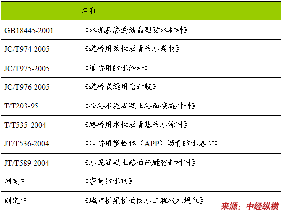 我国过去对桥面防水一般没有要求。80年代末,随着高速公路和城市高架桥的迅速发展,问题日渐突出,桥梁防水开始受到重视。进入90年代后,北京、上海、天津等地进行了多种防水材料的试点。但由于没有完善的桥面防水设计、施工、检测规范和标准,尤其在防水材料的选择和应用上缺乏科学性和实践经验,大多简单借鉴了屋面防水工程的作法。导致材料供应混乱,质量参差不齐,桥面防水层也出现不少问题,如防水层与铺装层和基层间的破坏、防水材料本身质量问题而不能 实现防水功能等。进入本世纪以后,亟待规范化选材标准,检测手段和施工技术在国内业界达成了共识,并受到重视。防水材料选用和试验标准已于2005年颁布执行,桥梁规范编制也已启动。