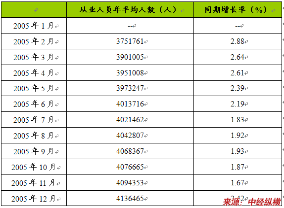 全部从业人员年平均人数及增长率月度数据