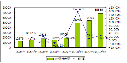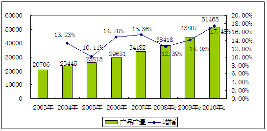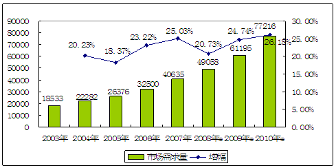 2003—2010年环卫汽车产品产量 分析 及预测图