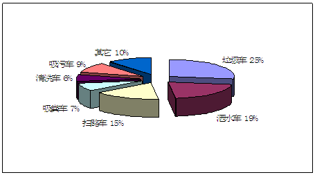 从我国近些年城市道路各种环卫汽车的消费分布情况来看,目前产品消费量最大的是垃圾车,占到产品消费总量的25%;其次是洒水车和扫路车,分别占到产品消费总量的19%和15%。
