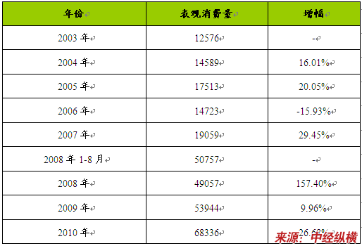 2003—2010年环卫汽车产品产量 分析 及预测表