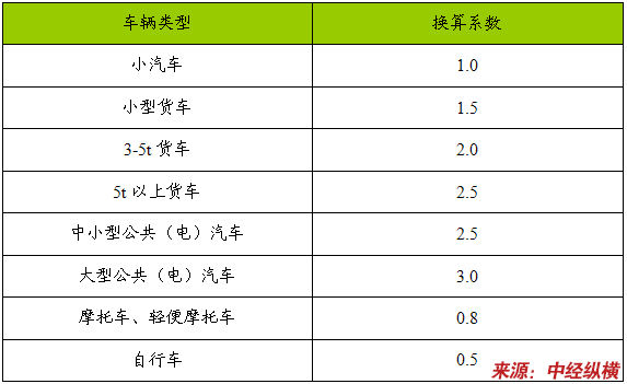 高速公路的交通量以通过公路的标准小汽车数计量,换算系数如下: