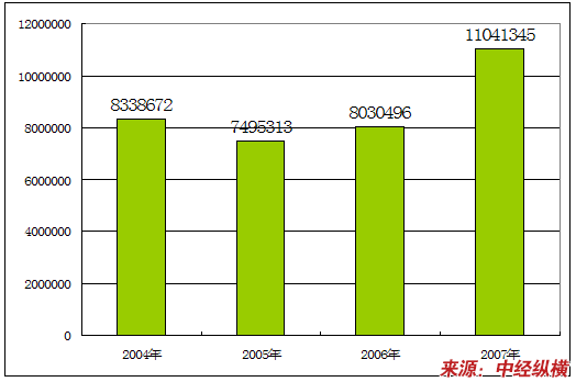 锦纶纤维是我国最早工业化生产的合成纤维,但长期以来由于多种原因发展速度偏慢。不过,自1998年以来,随着国内锦纶纤维需求的不断增长,其生产能力和产量都在稳定上升,尤其是消费量远远超过实际生产水平,致使国内市场在2003年一度出现产品供不应求,价格不断上涨的现象,促使近两年我国锦纶纤维生产能力和产量快速扩大。根据统计,2003年我国锦纶纤维的生产能力为83.2万吨/年,产量为56.51万吨,2004年生产能力增加到116.94万吨/年,比2003年增长约40.55%,创下历史上的最高记录。与此同时,其产量也上升到66.90万吨,增长幅度高达18.4%。