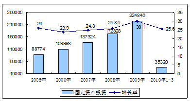 3、2009年投资持续快速增长,涉及民生领域的投资增长明显加快。2010年一季度,全社会固定资产投资35320亿元,同比增长25.6%.