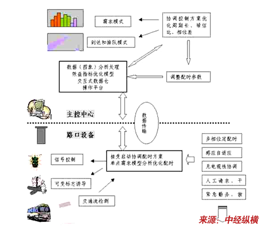 智能交通信号控制系统主要包括交通工程设计、车辆信息采集、数据传输与处理、控制模型算法与仿真 分析 、优化控制信号调整交通流等。