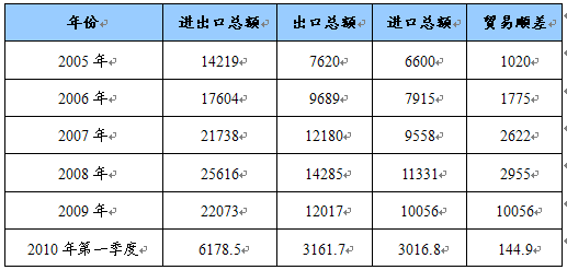 2005年-2010年我国对外贸易基本情况 单位:亿美元