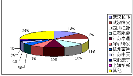 2、国外厂商与国内厂商并重。在光缆产品的光纤进口方面,美国康宁依然雄居进口光纤领导地位,约占中国进口光纤市场份额的50%以上,其后是阿尔卡特、藤仓等;同时,国内厂商产能迅速扩充,开始替代进口。