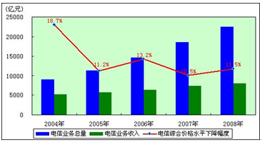 2004-2008年电信综合价格水平下降情况