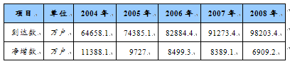 2004-2008年电话用户到达数和净增数