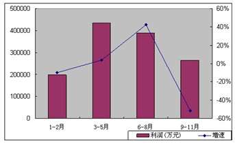 随着国际金融危机影响逐步显现,世界经济持续低迷,全球市场需求增长放缓,导致手机产业增速从年初开始逐月下降,多数企业效益出现负增长。1-2月,我国移动通信及终端设备 行业 实现利润19.8亿元,同比下降10%。至11月底, 行业 实现利润145.7亿元,同比下降11.8%。其中,9-11月, 行业 利润降幅超过50%。