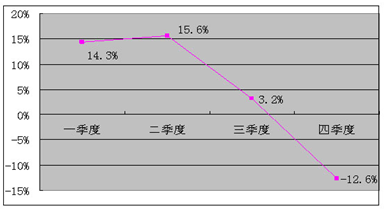 全年手机生产增速呈放缓趋势。1-2月增长14.3%,至三季度增速降至7.9%,全年增速仅为2%,比年初下降10个百分点以上。按月份看,三季度起开始出现负增长,10月下降2.6%,11月降幅高达38%,创下历年来的新低。
