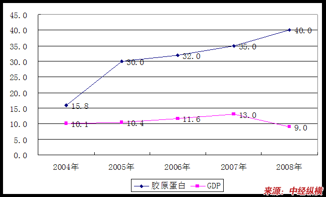 近年来.各类香肠制品在肉制品中所占的比例越来越大.天然的肠衣制品严重缺乏. 研究 人员正致力于替代品的开发以胶原蛋白质为主要的胶原蛋白肠衣本身是营养丰富的高蛋白物质。在热处理过程中,随着水分和油脂的蒸发与溶化。胶原蛋白几乎与肉食品的收缩率一致.而其他的可食用包装材料还没有被发现具有这种品质。其次,胶原蛋白本身具有固定化酶的功能。可以改善食品的风味和质量。尤其是香肠类制品。人造胶原蛋白肠衣同时还具有口感好、透明度高、制作工艺简单等特点,利于大量生产,开发前景好。