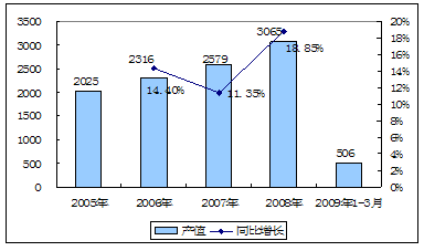 2005-2009年3月北京市建筑业完成产值统计 单位:亿元