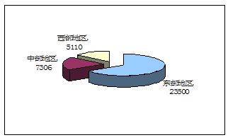 2008年建筑业企业完成竣工产值分布统计图 单位:亿元