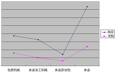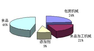从07年食品工业供应最关注的产品比例图,可以看出食品占42%,其次包装机械占24%,食品加工机械占21%,添加剂9%。