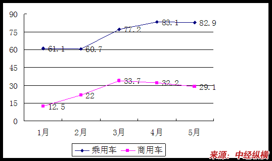 今年前5个月,乘用车产销同比增长15.61%和21.20%,但商用车产量同比增长仅0.62%,销量下降1.56%。乘用车与商用车市场表现相差悬殊。