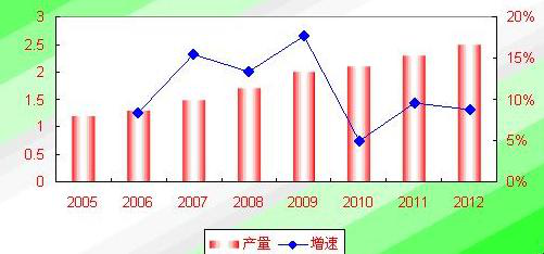 2005—2012年中国通信电缆用热缩套管 行业 产品产量走势图