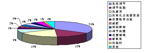 这也是目前国内保健食品市场各产品功能的主卖点,其代表产品从几年前的三株口服液,到现在火爆市场的交大昂立的昂立一号、昂立多邦胶囊等系列产品。按功能分:免疫调节,调节血糖、血脂、血压,改善视力、睡眠、记忆,改善营养性贫血、肠胃功能,治疗骨质疏松,抗疲劳、突变、辐射,促进排毒、泌乳、生长发育,保护化学性肝损伤,美容、减肥、清咽润喉、延缓衰老等27种功能。