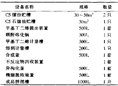 200t/a甲基四氢苯酐生产装置所需主要设备情况,如下表所示。