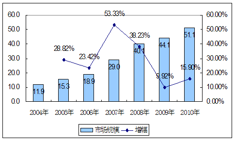 2004-2010年我国在线英语培训市场规模趋势