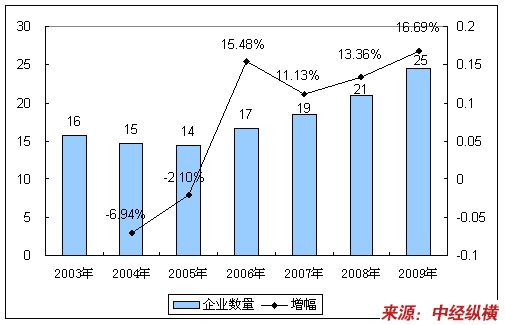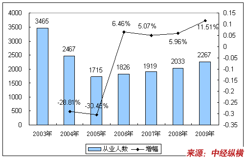 2003-2009年金银花产业 行业 从业人员数量增长情况