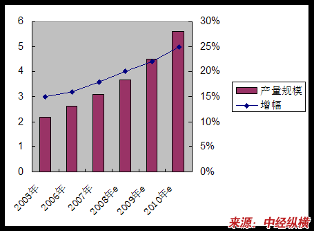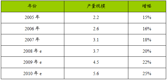 2005-2010年国内复方羚角降压片产品产量规模及预测表
